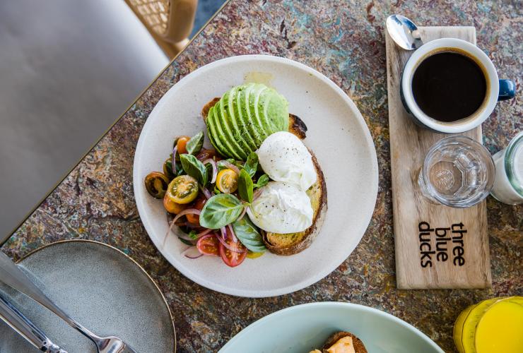 三只蓝鸭子位于布朗特(Bronte)滨海郊区,由三位来自悉尼顶级餐厅的年轻厨师创办,他们致力于可持续发展,并且所有食品都是从头开始制作。目前,三只蓝鸭子不断发展壮大。悉尼人喜欢点上一杯冷榨果汁和配有国产咸味酱以及牛油果的面包,或者黑香肠配炒蛋,饱餐美味后再漫步下山,在布朗特海滩享受冲浪的乐趣。或者前往罗斯贝丽的大型仓库式景点,感受别样的氛围。