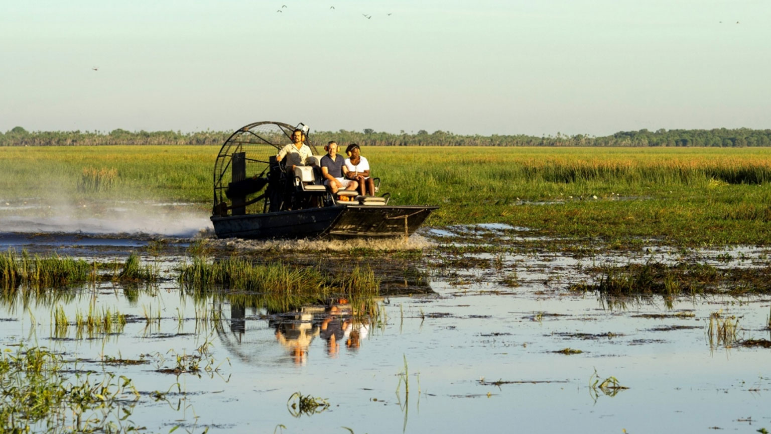 巴姆鲁平原酒店(Bamurru Plains)位于卡卡杜国家公园(Kakadu National Park)边缘,坐拥方圆 300 平方公里的壮美自然风光。这里的主要旅游项目有:坐汽船穿越玛丽河(Mary River)漫滩,观赏咸水鳄、野马和水牛,之后还能从 The Hide 观景台观赏当地鸟类自由翱翔。每栋豪华旅舍都经过精心安排,能够彰显当地历史,点缀当地环境,致敬原住民和乡村历史。