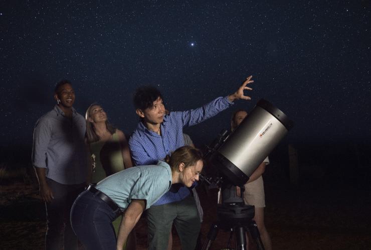 澳大利亚白天阳光明媚,夜幕降下后,天空会变成一片璀璨的星海。乌鲁鲁(Uluru)位于红土中心(Red Centre),这片沙漠上方的天空非常适合观星。你可以看到无数的星星悬挂在澳大利亚这块神圣的单体巨石上方的天空中,给你留下永不褪色的深刻印象。在乌鲁鲁天文观测之旅(Uluru Astro tour)期间,全家人可以用望远镜更深入地感受一番,充当一回沙漠天文学家。
