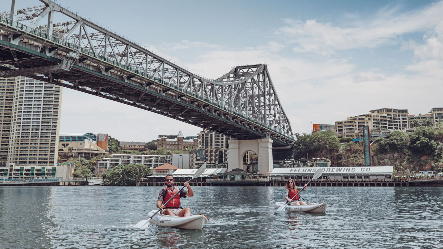 布里斯班河(Brisbane River)是该市的中心所在。沿着该河流开启皮划艇冒险之旅,从全新视角认识布里斯班。你可以游览列入文化遗产名录的大袋鼠角崖(Kangaroo Point Cliffs)、熙熙攘攘的海滨街区和标志性的故事桥(Story Bridge)。