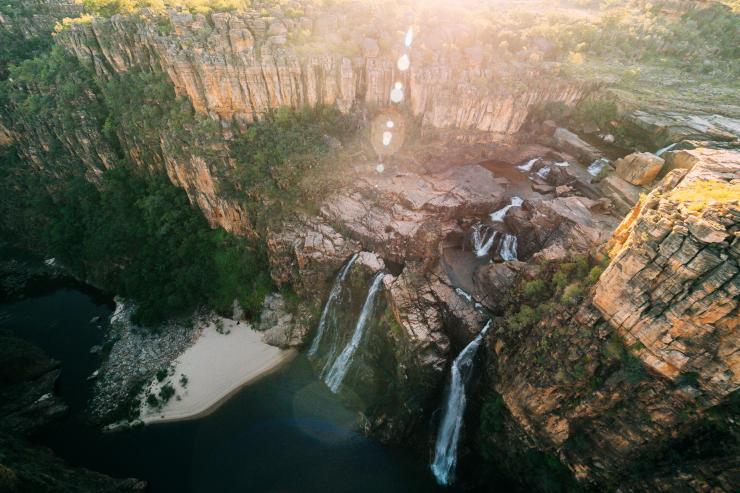 卡卡杜的瀑布是澳大利亚最令人印象深刻的瀑布之一。当你仰望它时,会为它的声势浩大所震撼,俯望它时,则有更强的史诗感。乘坐观光飞机欣赏这些美得令人窒息的景色。