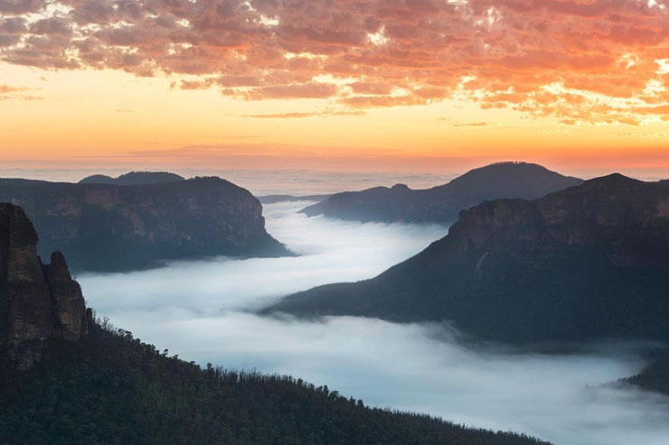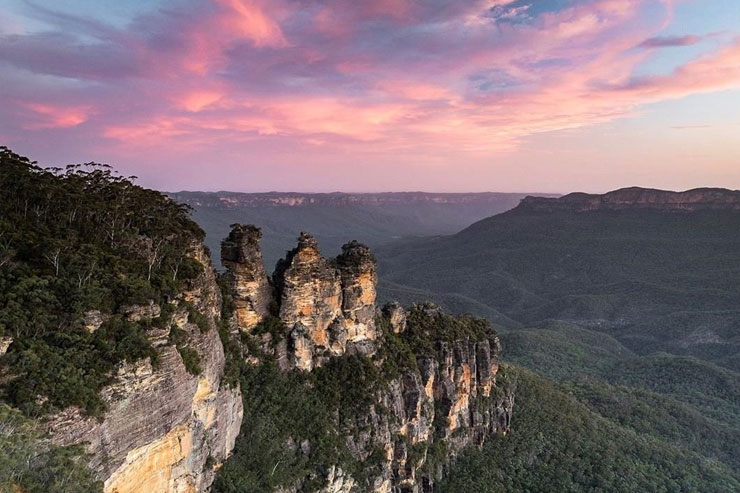 蓝山的风化砂岩悬崖高耸入云,至今已在这里矗立了五千多万年。置身其中,你会感到自己是如此渺小。这条位于悉尼西部崎岖不平的山脉,正是深受人们喜爱的三姐妹峰的所在之处,高耸的岩层在太阳的照射下不断呈现出不同的景象并投射出美丽的阴影,随着一天中时间的变化,俨然变成一块壮观的调色板。你可以与家人在三姐妹峰一起漫步,享受温馨和谐的氛围,同时欣赏如画的风景。