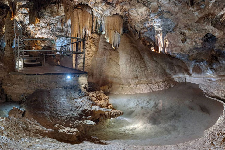 珍罗兰山洞(Jenolan Caves)是大蓝山世界遗产区的亮点之一,山洞里的石灰岩被地下河流冲刷出一条条裂口,钟乳石石柱层层林立其中,宛若一个壮观的迷宫。这里共有 300 个洞穴,其中 9 个开放供公众观赏,可供选择的旅游项目很多。卢卡斯洞是最出名的山洞之一。山洞里有壮观的石灰岩形成的断柱(Broken Column)以及大教堂,这是一间 54 米高的大厅,经常举办音乐会和表演。