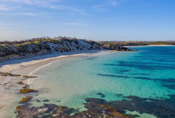 南澳大利亚州的袋鼠岛(Kangaroo Island)被风景如画的海滩所包围,而其中最美的当属微风湾海滩(Vivonne Bay Beach)。这个海滩周围没有很多点缀,但正是这份纯粹让它与众不同。想象一下,一片洁白无暇的沙滩,清澈见底的海水,顽皮的海豹和海豚恣意嬉戏,微风湾保育公园(Vivonne Bay Conservation Park)内,数公里长的灌木丛林在微风中轻轻摇曳,这是多么美妙的场景。