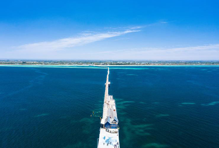巴瑟尔顿栈桥(Busselton Jetty)从玛格丽特河(Margaret River)地区海岸向印度洋方向延伸,全程 1.8 公里,它本身便是一道靓丽的风景线,而在栈桥之下,更是隐藏着更多宝藏。栈桥始建于 1865 年,100 多年来,淹没在水下的木质桥塔成为了生机勃勃的海洋生物的家园,现在,这个偶然形成的人造暗礁已有 300 多种生物栖息于此。有人在栈桥的末端刻意增置了大型水下雕塑,为野生动物提供了更多的家园,也为潜水爱好者的探险之旅提供了更多美轮美奂的景象。