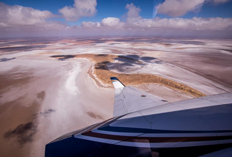 艾尔湖(Lake Eyre)湖水呈浅粉、橙色和黄色,堪称南澳大利亚州内陆地区壮观美景的缩影。它距离阿德莱德六个小时车程,乘坐飞机一个半小时即可抵达,平时是一个闪闪发光的白色盐田,粲然可观。不过,每隔几年,随着湖水泛滥,它就会变成另一番美丽模样。洪水带来了繁茂的绿色植物和成群的鸟儿,湖水也呈现出梦幻般的粉色和橙色。体验这片沙漠绿洲的最佳方式,莫过于乘坐像 Wrightsair 这样的观光飞机从空中俯瞰。