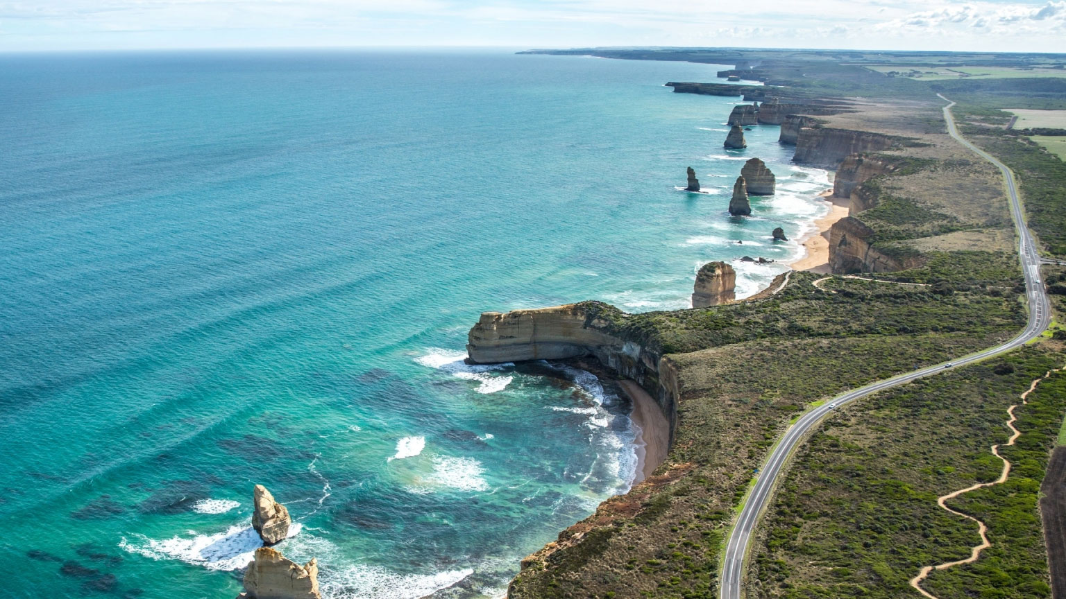 大洋路(Great Ocean Road)是澳大利亚最美的公路之一,沿途可欣赏到壮丽非凡的海岸线景观。慢点开车,尽情享受这些难得一见的美景。然后进入内陆,探索茂密的森林和雾蒙蒙的瀑布。有机会一定去参观一下著名的十二门徒岩(12 Apostles),那些高耸的石灰岩岩层令人惊叹,无奈论你何时前往,都会为之震撼 —— 尤其是当落日给它们披上焰红的外衣时,更显壮观。