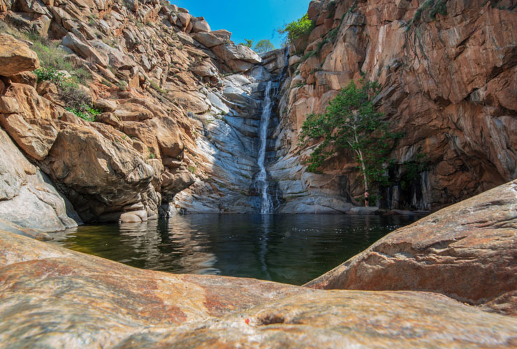 在布里斯班以北 1 个小时车程处便是美丽的阳光海岸(Sunshine Coast)腹地,这里拥有众多岩池,其中最美丽的当属加德纳尔瀑布(Gardners Falls)。从欧比南巷(Obi Lane South)的停车场走一小会便能到达一处原生态的水潭,四周岩石环绕,岩石上日光浴正好,瀑布的水流演奏着舒缓的音乐。大胆的游客可以在主游泳区尝试荡绳,小朋友们则可以在小岩池中嬉戏玩耍。鳗鱼生活在其中一个水池之中,你会感受到鳗鱼在你脚下滑过的奇妙。
