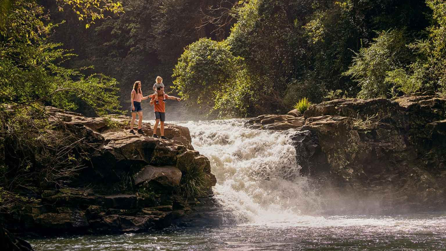 海边村庄可伦宾(Currumbin)位于布里斯班以南一个小时车程处,属于黄金海岸(Gold Coast)的旅游热点,吸引了大量的游客前来参观这里久负盛名的野生动物保护区和迷人的阳光沙滩美景。而且,这里的淡水湖也同样美丽,可伦宾岩池(Currumbin Rock Pools)就是吸引众多家庭经常光顾的一处景点。这里有许多长满绿草的野餐之地,还有许多浅浅的岩池供小朋友玩耍,而那一处主池一到周末就变成派对盛景。库加尔小瀑布(Cougal Cascades)位于道路尽头,这里就要安静许多。