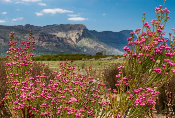 格兰屏山区(Grampians)可能是因为值得拍照打卡的明黄色油菜花田引起你注意的,但维多利亚州全州有三分之一的植物群都可以在此地找到,包括柔软的一束束粉色普通石楠,这是该州的州花。传统的当地人把一年分为六个不同的天气周期,其中一个被称为 Petyan,即野生动物和野花的季节。你不妨在 8 月至 11 月之间的 Petyan 季节前往格兰屏山区国家公园(Grampians National Park),在这片高低起伏的沙岩景观中,你会发现有精致的野花点缀其中。