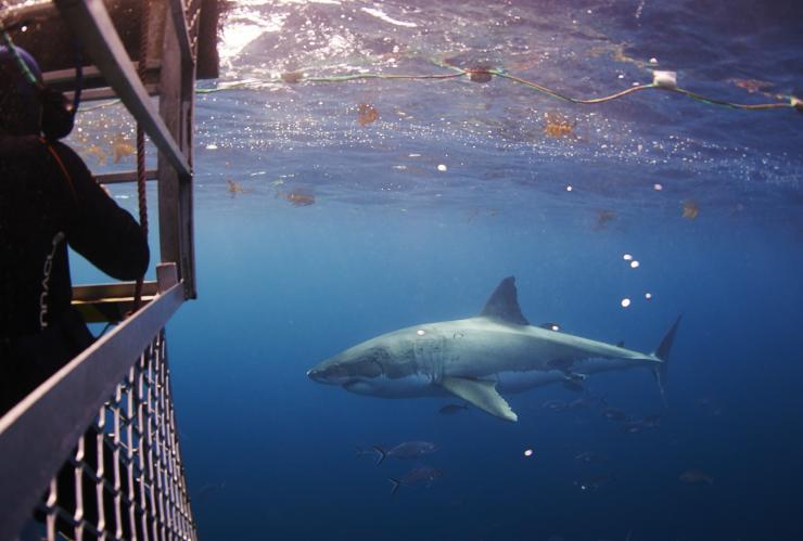 你可以在水上观看,也可以穿上潜水衣,跳入水下的笼子里,深入它们的地盘近距离观看这些巨型猛兽。观看身长七米的鲨鱼在水中迅速游行,一点都不会让人心惊肉跳,反而觉得奇妙无比,令人流连忘返。在海上度过漫长而充实的一天后,你可以伴着日落享用一些炸鱼薯条,然后前往居所过夜。