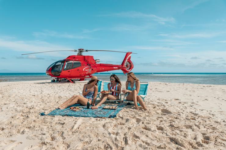 去哪找像弗拉索夫焦岩(Vlasoff Cay)那么特别的野餐地?乘坐直升机,降落在一小块沙滩上 —— 周围有蓝绿色的珊瑚海(Coral Sea)环绕。你可以在清澈透明的海水中浮潜,然后享受一顿丰盛的早餐和起泡酒。