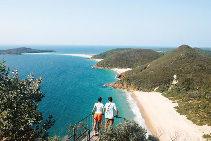5 月到 10 月期间,你可以带上双筒望远镜,徒步前往位于托马利国家公园(Tomaree National Park)的托马利山(Mount Tomaree)山顶,就有机会看到座头鲸一年一度的迁徙场面。长达 1 公里的步道非常陡峭险峻,但景色值得一看。