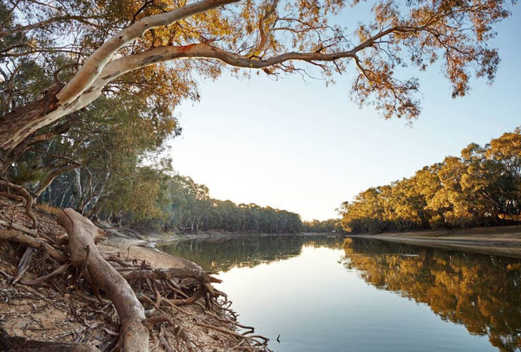 “维多利亚州北部的墨累河(Murray River)风光有别于该国的其他地方。这里的生活围绕水道展开,而且始终如此。它静静坐落在一棵可能有着数百年历史的河桉树旁,这棵树早在白人(欧洲人)来此之前就已经存在了,为在河岸和漫滩耕作的原住民提供清凉的绿荫。如今,这条河滋养着从鲁瑟格兰(Rutherglen)到天鹅山(Swan Hill)沿途附近的果园、农场和酒庄,这片地区出产颇具影响力的红葡萄酒,是采用在这种地形中能够生存的葡萄品种酿制的。