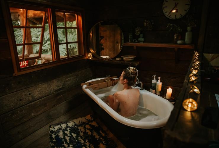很少有像 Nulla Nulla 铁匠森林溪木屋(Nulla Nulla Blacksmith’s Forest Creek wood cabin)这样雅致的旅游小屋,它们坐落在大分岭(Great Dividing Range)山脚下的一个农场里。如果你寻求排毒纳新,这些旅游小屋提供可供预订的完整套餐,包括装在篮子里的有机土特产食物、瑜伽、按摩、冥想和森林浴等等。你也可以到清澈的小溪里游泳,然后躺在河边的吊床上消磨时光。