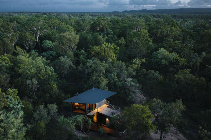 Hideaway Litchfield 由两个一居室小屋组成,是用集装箱改造成的。两个小屋组成上下两层,当两组朋友或一个家庭入住时,既能确保隐私,也能住在一起。屋外的波形金属板墙面刷成黑色,屋内明亮且带空调,配备实用的厨房和中世纪风格的家具。用水取自地下天然泉水,部分电力来自太阳能。你还可以探索李治菲特(Litchfield)其他众多景点,其中最著名的是佛罗伦斯瀑布(Florence Falls)游泳胜地,距离小屋 30 分钟车程。
