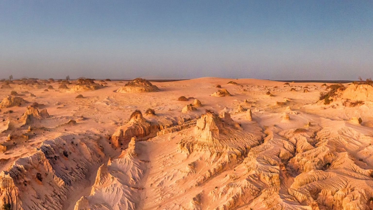 1968 年和 1974 年,人们在蒙哥国家公园(Mungo National Park)一个干涸湖床边缘发现“蒙哥女性”(Mungo Lady)和“蒙哥男性”(Mungo Man)骨骼,这是在非洲以外地区发现的已知最古老的人类骨骼,重新书写了世界历史,让澳大利亚的人类居住时间提前了一倍。该公园是威尔兰德湖地区世界遗产区(Willandra Lakes Region World Heritage Area)的一部分,在风和水的长期侵蚀下形成了鬼斧神工的沙丘土墙地貌。你可以入住蒙哥旅舍(Mungo Lodge)并参加导游陪同的游览之旅,这处月牙形低丘因其奇特的形态而被称为“中国墙”(Walls of China),在这里还曾发现过古人类的遗迹。